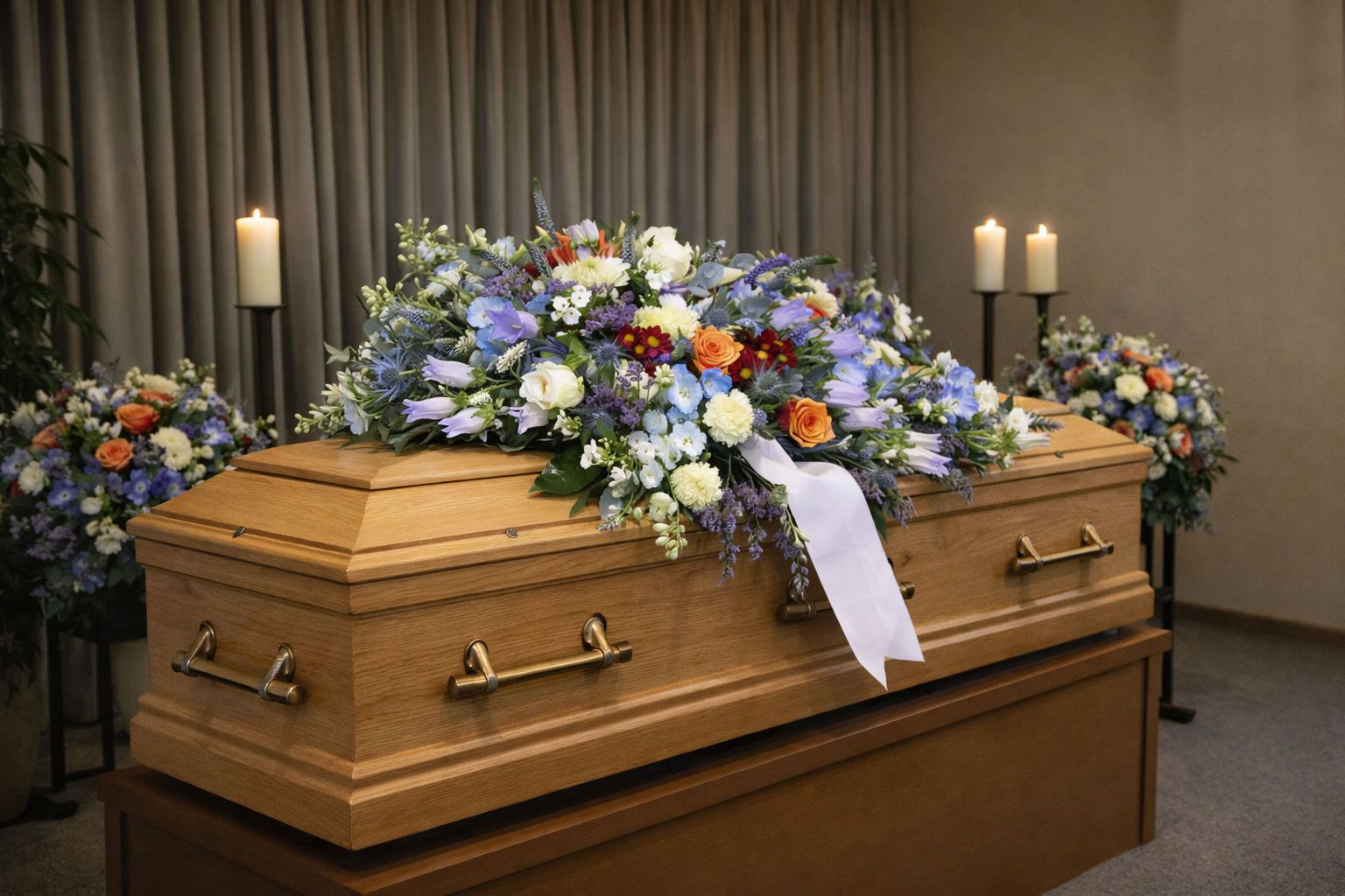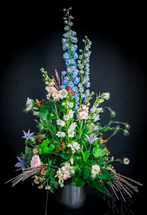 Naast het rouwbloemstuk is het mogelijk om een bloemstuk in dezelfde kleuren te bestellen voor op een tafel of als extra naast de kist te plaatsen.